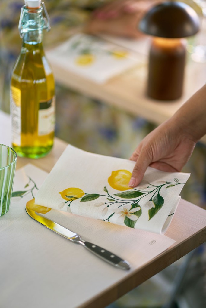 Produktinformationen "Bio-Dunisoft-Servietten 1/4 Falz Lemon Fiesta, 40x40cm"